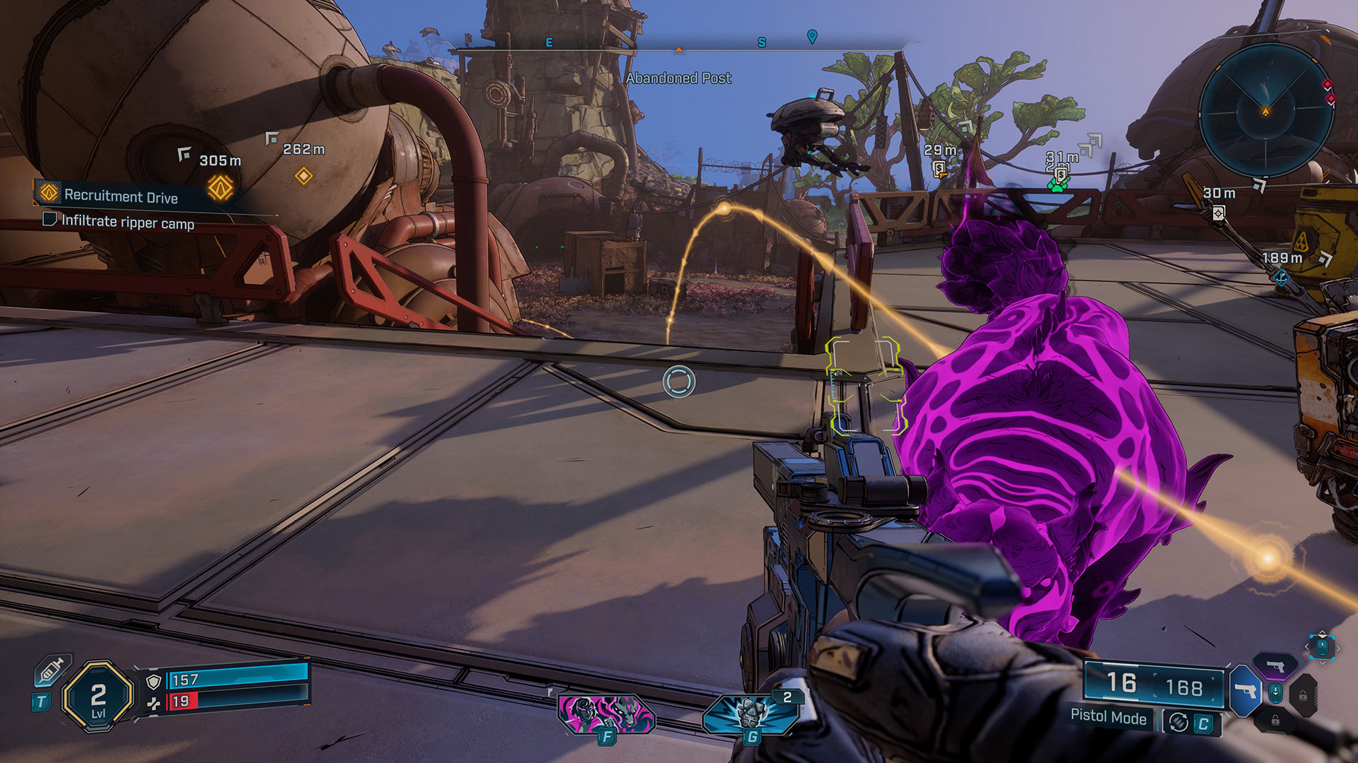 What was a huge step backward, though, is Borderlands 4 following in the footsteps of Diablo IV and removing the minimap. I completely disagree with developers who continually say that minimaps ruin immersion. It’s even sillier in Borderlands 4, because you can bring back the radar, but now it only shows enemy locations with red diamonds. What would be so detrimental to the experience if players simply had the option to have a minimap in that same location? It’d be acceptable if the navigation guideline were competent, but Borderlands 4’s implementation is buggy at best and extremely frustrating at worst. About one time in ten, the line sent me off a cliff or straight into a wall; other times, it would take me the longest way possible. Even more frustrating is that there’s a cooldown to draw the path, and sometimes the line entirely fades before you can activate it again. It’s just a frustrating pain point that could have been avoided if a minimap were available when the player chooses to re-enable the radar. Not a single person in our group of six avoided guideline issues, and most found it more annoying than Claptrap at his worst.