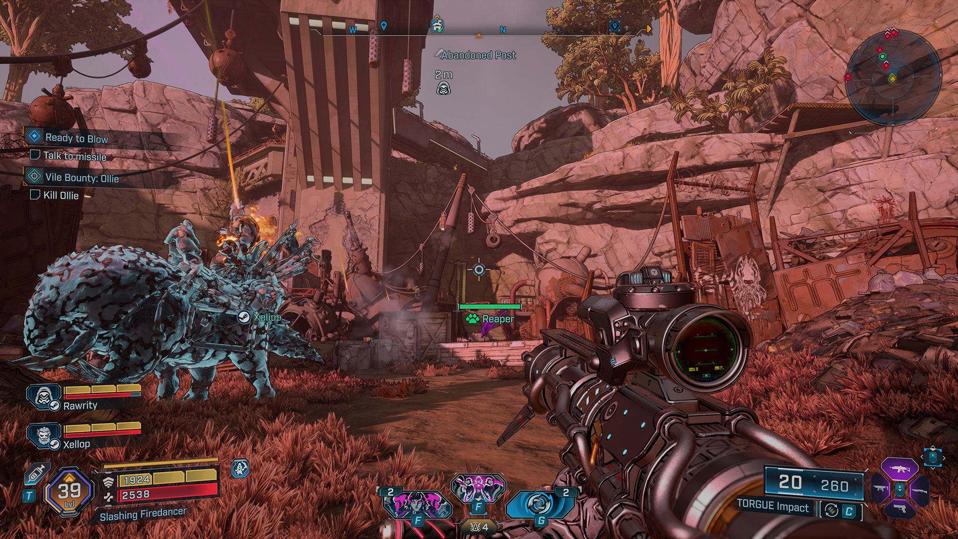 With over 60 hours spent in the game and currently farming UVHM 5, our group has already discovered numerous items and has come up with our own builds that have been a blast to play. Co-op, oddly, feels like a step backward. We ran into several situations where even the game’s host didn’t get credit for quest completion, and farming bosses in a group of four resulted in some serious lag. Sometimes, resurrecting didn’t happen even when the bar was full, leaving you standing there waiting until the game decided to bring your partner back up. Other times, the loot explosion from defeating a boss wouldn’t occur for five to 10 seconds afterward. These issues frequently reared their ugly heads when we were in a group of four. The worst bug we ran into left two of us completely stuck in an area of the game. We teleported to an endgame activity we hadn’t unlocked yet, and when the host left, we had no way to exit the zone until they returned. Basically, our instance of that zone had no exit because we weren’t supposed to be there yet, and we had no option to fast travel back to the main map.