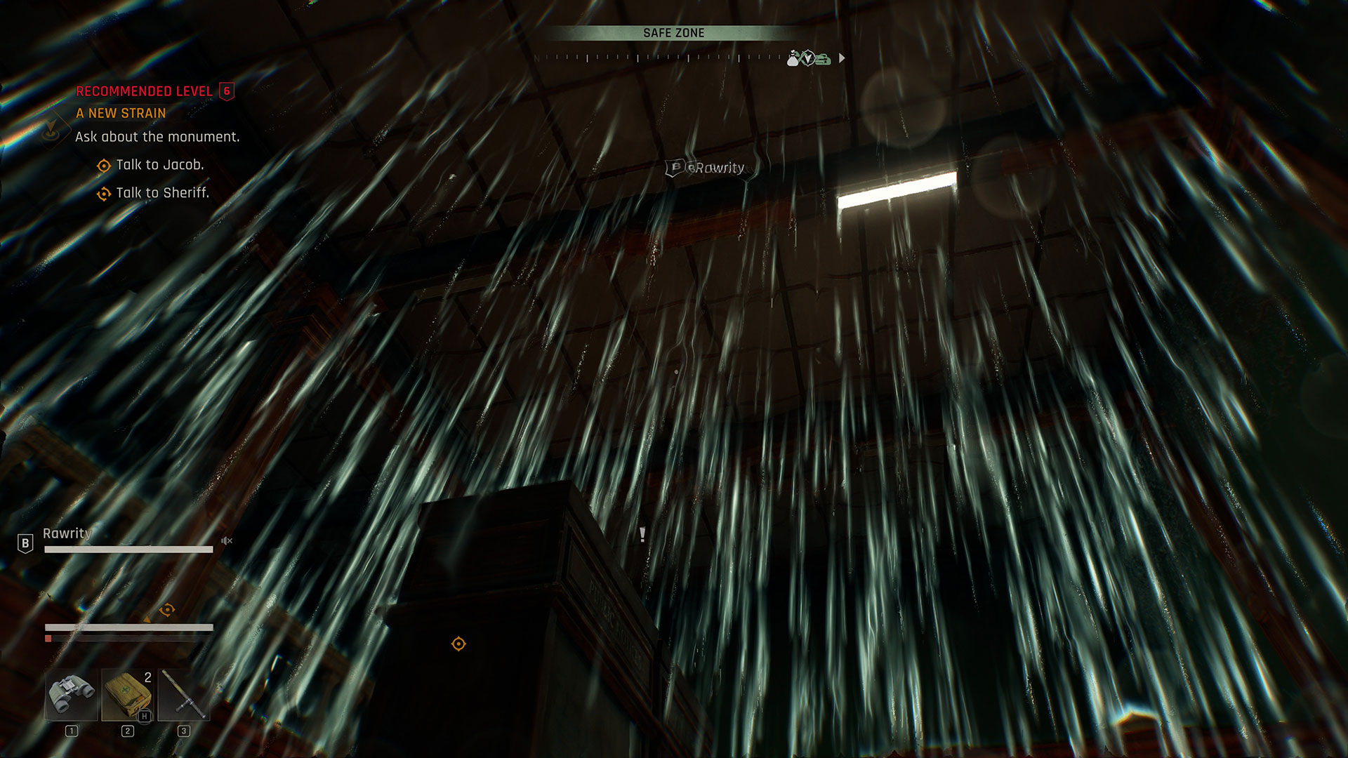 The first was a rain bug, in which rain essentially took over the screen even when we were indoors. I found myself having to restart the game to get rid of it, as even sleeping didn’t make it go away. Another bug, which was entertaining at first, was that the world’s lighting didn’t match the actual day-night cycle. This meant my screen might be bright as day, but my co-op partner was in pitch-black night, even though our in-game clocks matched. Quite a few times I found myself a bit shocked when I encountered Volatiles in a brightly lit environment, only to check the in-game clock to find out it was really supposed to be night.