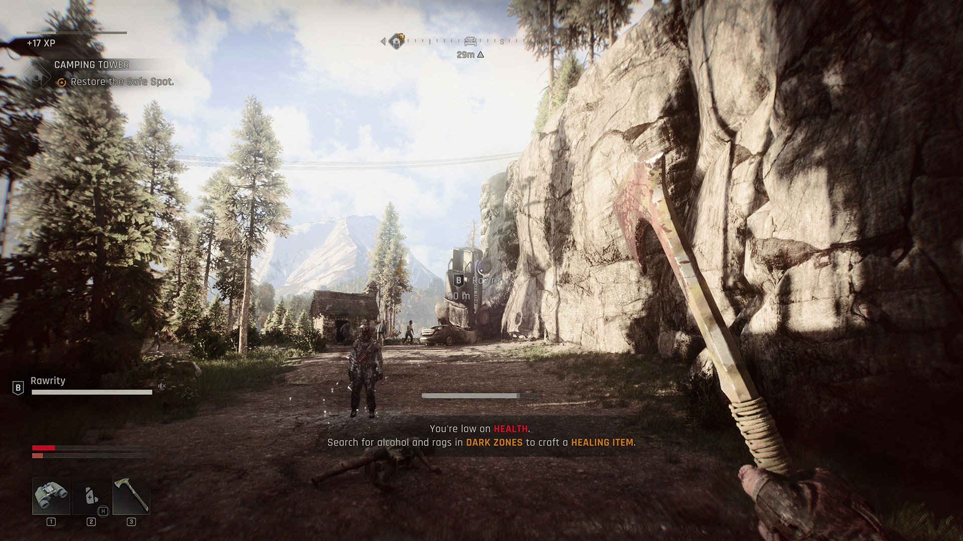 When it comes to weapons and tools, Crane has plenty in his arsenal, from bows to crossbows, shotguns to revolvers, grenades to throwing knives, axes to shovels. Many of the melee weapons feel different to use, with two-handers following the standard pattern of slow but powerful, while one-handers are quick but not as lethal. Weapon durability and repair return as well, with all melee weapons having a finite number of repairs available. After that, you’re better off selling or dismantling them because they’re useless. You can also slot modifications into certain weapons, giving them elemental procs like electricity or fire. While the repair and durability may sound troublesome, it’s really not. Most of the time, you’ll want to upgrade your weapons to a higher level anyway for more damage, which means you’ll eventually want to dispose of your old ones. You can upgrade a weapon’s level if you find one you really love, but that takes a lot of materials and often isn’t worth the effort.