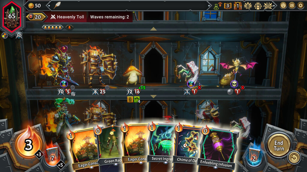 At its core, the sequel doesn’t reinvent what made its predecessor so beloved. Instead, developer Shiny Shoe confidently doubles down on the game’s strengths. The central loop consists of drafting cards, strategizing unit placement across the three floors, and protecting the Pyre Heart at all costs. There’s an oddly satisfying rhythm of turn-based tactical placement while managing limited resources and responding to enemy waves. The best way I can describe this sequel is that it takes the core mechanics of the original game and deepens them. The introduction of the new clans and cards results in plenty of new strategies to discover, and veterans will have a lot to look forward to.