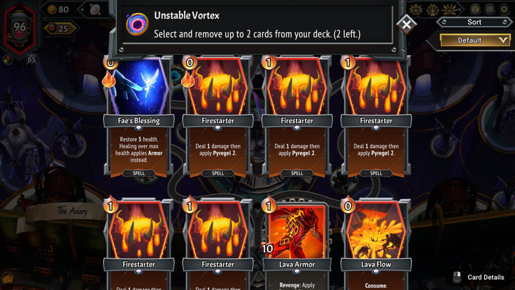 Unfortunately, some of the criticisms I had for Monster Train persist in the sequel. For starters, I still find the difficulty gap between the second-to-last battle and the final battle for each run to be quite wide. Several times I found myself with decks that were completely dominating through the first seven battles, and then I’d fail spectacularly in the final fight. These difficulty spikes were in the original and carry over in Monster Train 2, and sometimes it isn’t even attributed to getting a bad draw. In addition, certain clan and card combinations feel disproportionately strong, sometimes highlighting the limited pool of cards. While the UI did get noticeable polish, some elements still lack clarity, requiring constant mouseover for certain interaction effects.