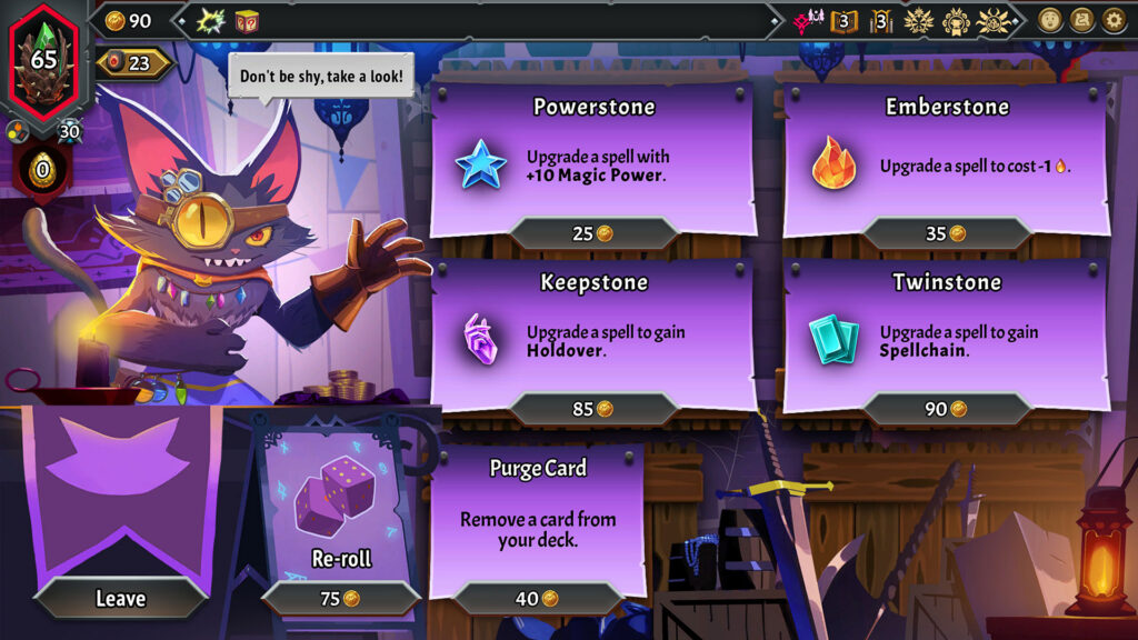 Following successful battles, players choose between two paths, each offering different rewards. Multiple shops include places to upgrade units or spells, or acquire artifacts, weapons, and room cards. Of course, these shops require currency which can be gained throughout your run. Prior to some battles, there’s also an option to add a modifier to earn additional currency. Other nodes on the map include locations that allow you to remove up to two cards from your deck, replenish Pyre Heart health, duplicate a card, or earn gold. All of these variables contribute to the depth that Monster Train 2 has to offer and make each run feel different than the last.