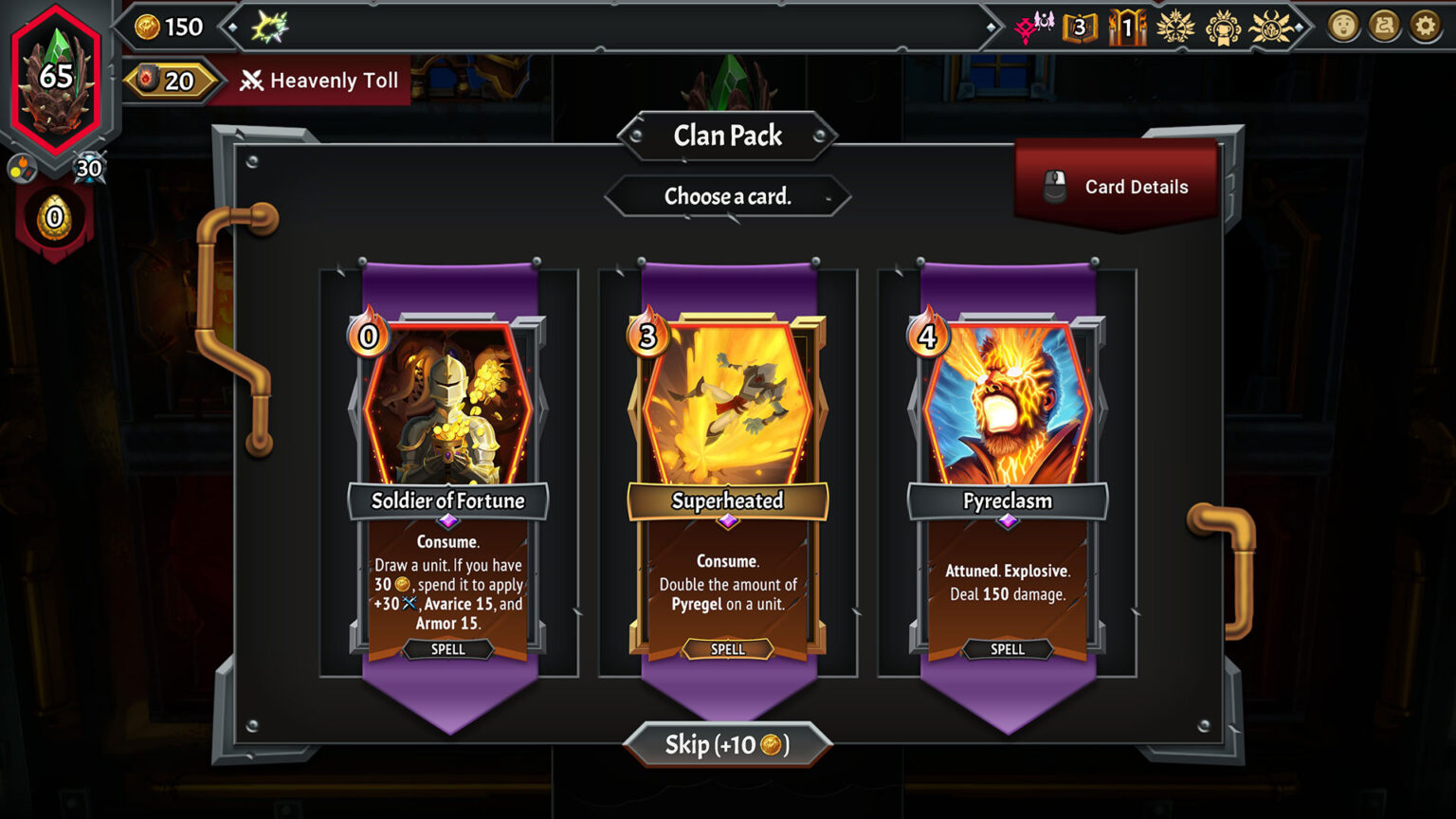 Both Covenant Ranks and Mutators are used in the new Dimensional Portal gameplay mode where Dimensional Challenges live. There are 21 in total and each challenge chooses everything for the player: primary and allied clans, Pyre Heart, and Mutators. The Dimensional Portal is the perfect challenge for experts of the game, as you’ll need to have mastery over each clan’s archetypes in order to do a successful run. I found some of these to be quite challenging, while others were really fun when I managed to break the game with some very powerful builds. It’s also a great mode to learn how synergy works with each of the clans.