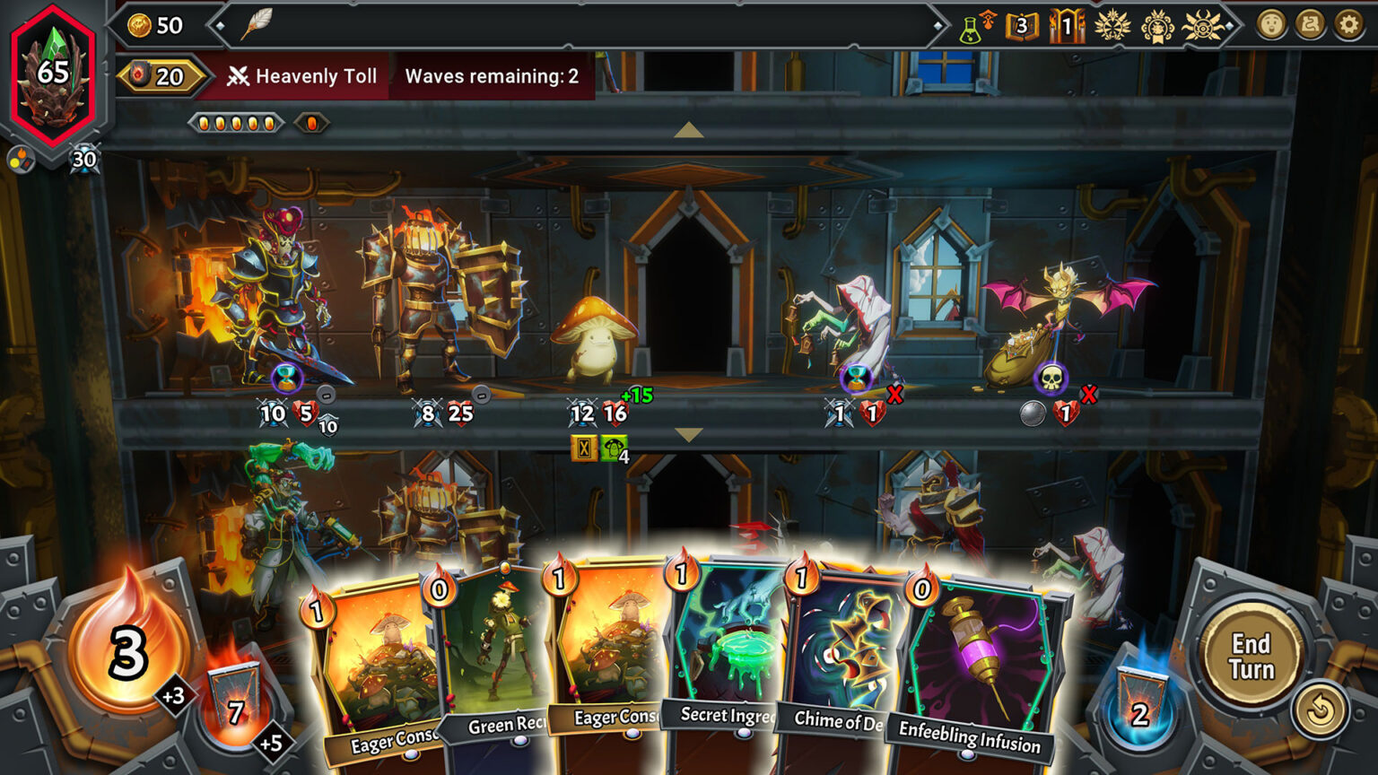Both Covenant Ranks and Mutators return from the base game. Covenant Ranks are selectable levels that must be unlocked through successful playthroughs that add fixed modifiers to make the runs more difficult. For example, Covenant Rank 1 makes it so enemies are stronger and additional random cards are added to the starting deck. Mutators are also affixes that are similar to the effects added by Covenant Ranks, but up to three are chosen by the player. These can range from spells or units having additional cost to cards having fewer upgrade slots. The big difference with Mutators is that runs customized with them aren’t counted towards card mastery, Covenant Rank unlocks, or victory tracking. They’re really just there for increased customization if you somehow manage to get bored with the game.